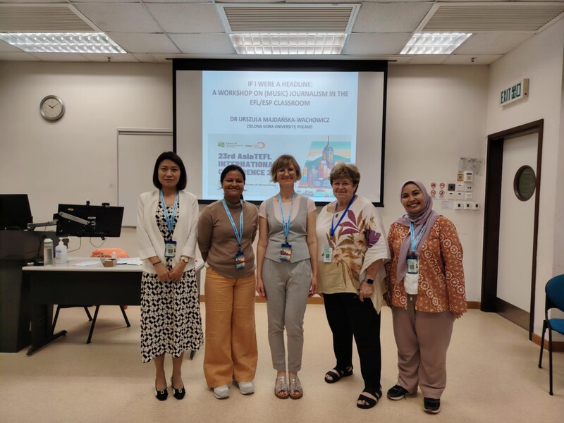 Latem tego roku, dr Urszula Majdańska-Wachowicz (Instytut Neofilologii, Zakład Anglistyki) reprezentowała Uniwersytet Zielonogórski na międzynarodowej konferencji naukowo-dydaktycznej w Hongkongu pt. The 23rd Asia TEFL International Conference 2025: “Care, Innovation, and Suitability in ELT” (11-13 lipca 2025 r.). Konferencja odbyła się na uniwersytecie pedagogicznym The Education University of Hong Kong. Dr U. Majdańska-Wachowicz przeprowadziła warsztaty metodyczne pt. „If I Were a Headline: A Workshop on (Music) Journalism in the EFL/ESP classroom”. Warsztaty prezentowały implikacje dydaktyczne badań zawartych w niedawnej monografii Pani Doktor (Recenzja muzyczna jako gatunek wypowiedzi. Ujęcie kontrastywne, Oficyna Wydawnicza Uniwersytetu Zielonogórskiego, Zielona Góra 2024).